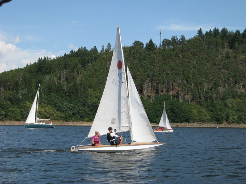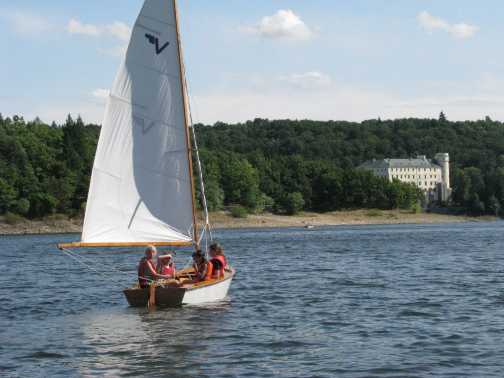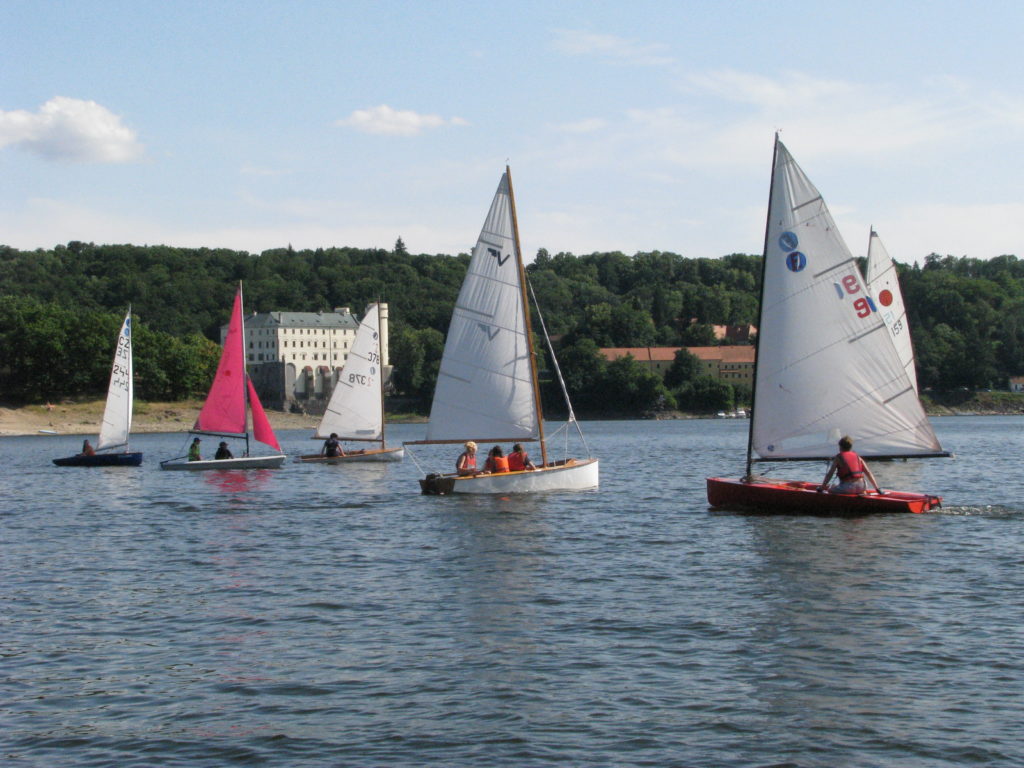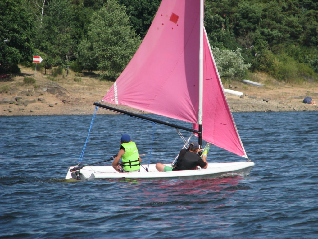 První dny jsme strávili přípravou lodí a testováním. Toho dne právě vedoucí na lodi Fireball strávili více času ve vodě než na lodi. Jejich omluvou bylo prohození kormidelníka a kosatníka. Další dny, poté kdy se prostřídali už vše šlo lépe. Děti si oživovaly základy plavby, pravidla plavby a trénovaly na blížící se závody. Slunné dny bez větru jsme strávili napřed chlazením ve vodě, poté hrami v lese a následným opětovným chlazením ve vodě. Věřte, že takto vážná opatření byla třeba. 😀
